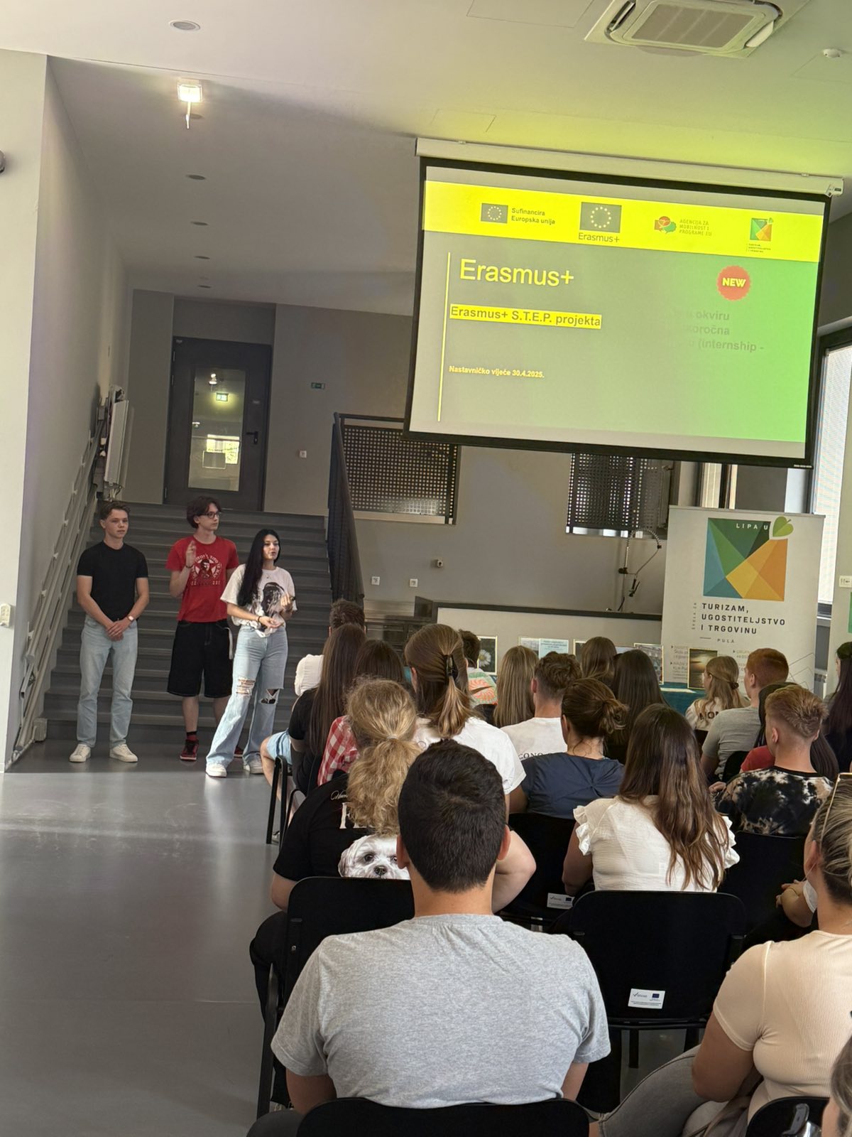 Na Danu otvorenih vrata Škole za turizam, ugostiteljstvo i trgovinu, održanom 5. lipnja 2025., učenici koji su sudjelovali u Erasmus+ kratkoročnoj mobilnosti u Portugalu predstavili su svoja iskustva i rezultate mobilnosti pred budućim učenicima škole i njihovim roditeljima.