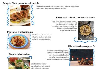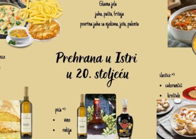 U okviru projekta Erasmus + S.T.E.P., a kao rezultat mobilnosti (ožujak, 2025.) učenici 3.a razreda, smjer HTT, izrađivali su plakate na temu gastronomske ponude Istre kroz povijest. Podijeljeni u 4 grupe izradili su plakate u digitalnom obliku te plakate koji će biti izložen u učionici. Svaka je grupa imala jednu temu. Gastronomska ponuda Istre u vrijeme antike, Gastronomska ponuda Istre u doba Austro-Ugarske te gastronomske ponude Istre u 20.st. i suvremena, moderna gastro ponuda 21.st.