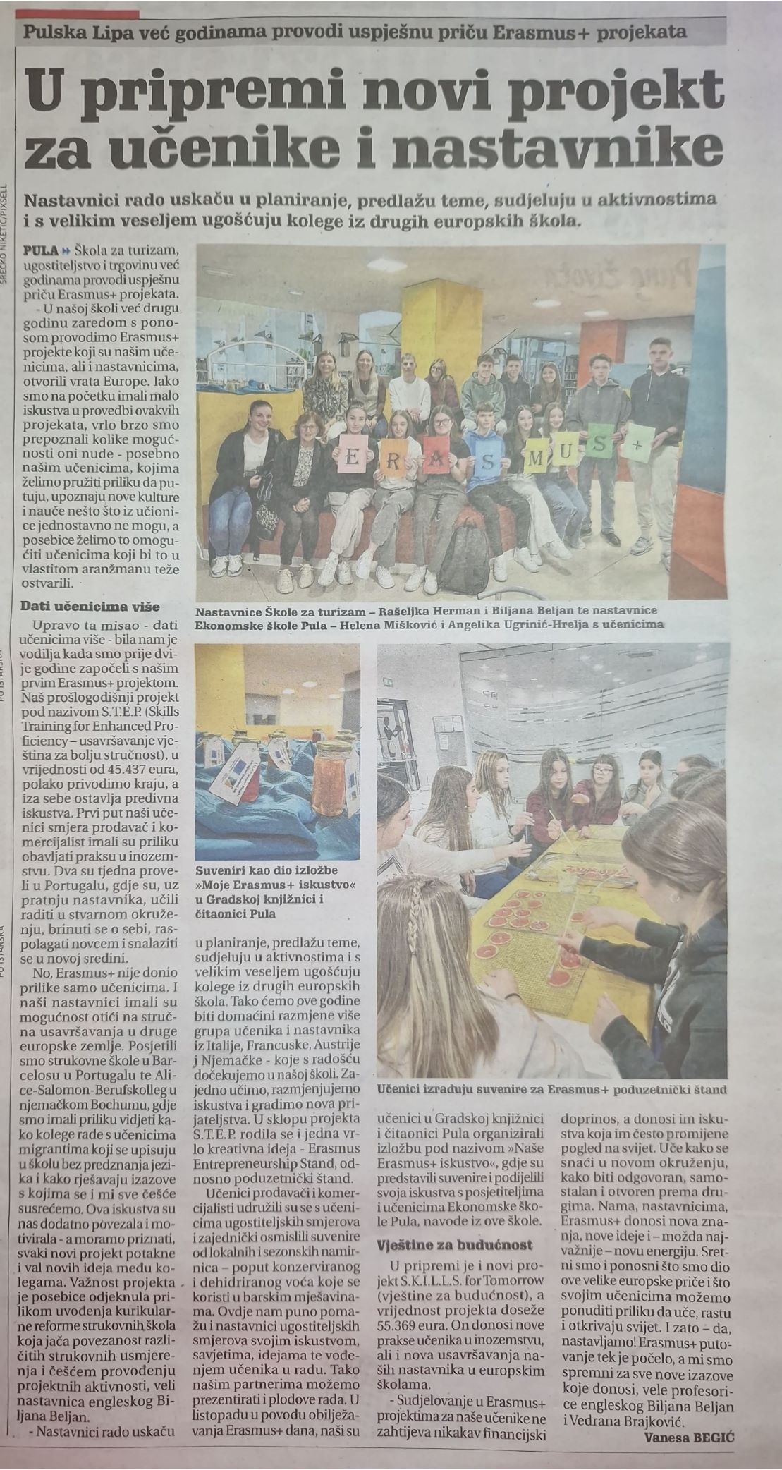 Uspješnu priču o Erasmus+ projektima Škole za turizam, ugostiteljstvo i trgovinu pročitajte u članku Glasa Istre!